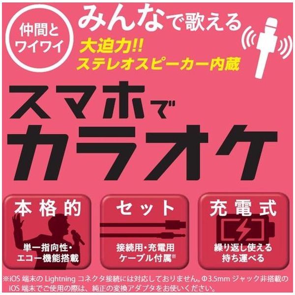 ●スマホだけでカラオケが楽しめる! 大迫力のステレオスピーカー内蔵で、どこでもみんなで楽しめるスマートフォン用カラオケマイク。