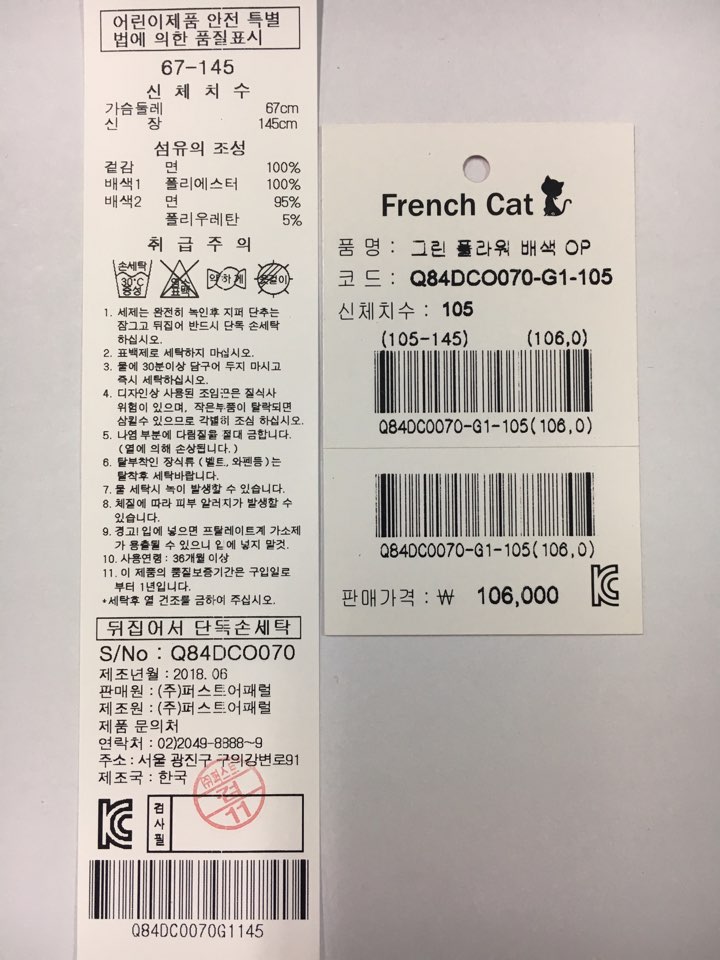 제조자 : 퍼스트어패럴