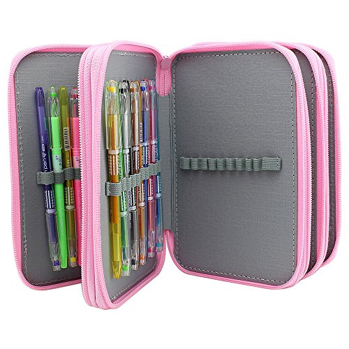 Super Large Capacity Multilayer Pencil Case, Holds 72 Pencils (Pink)