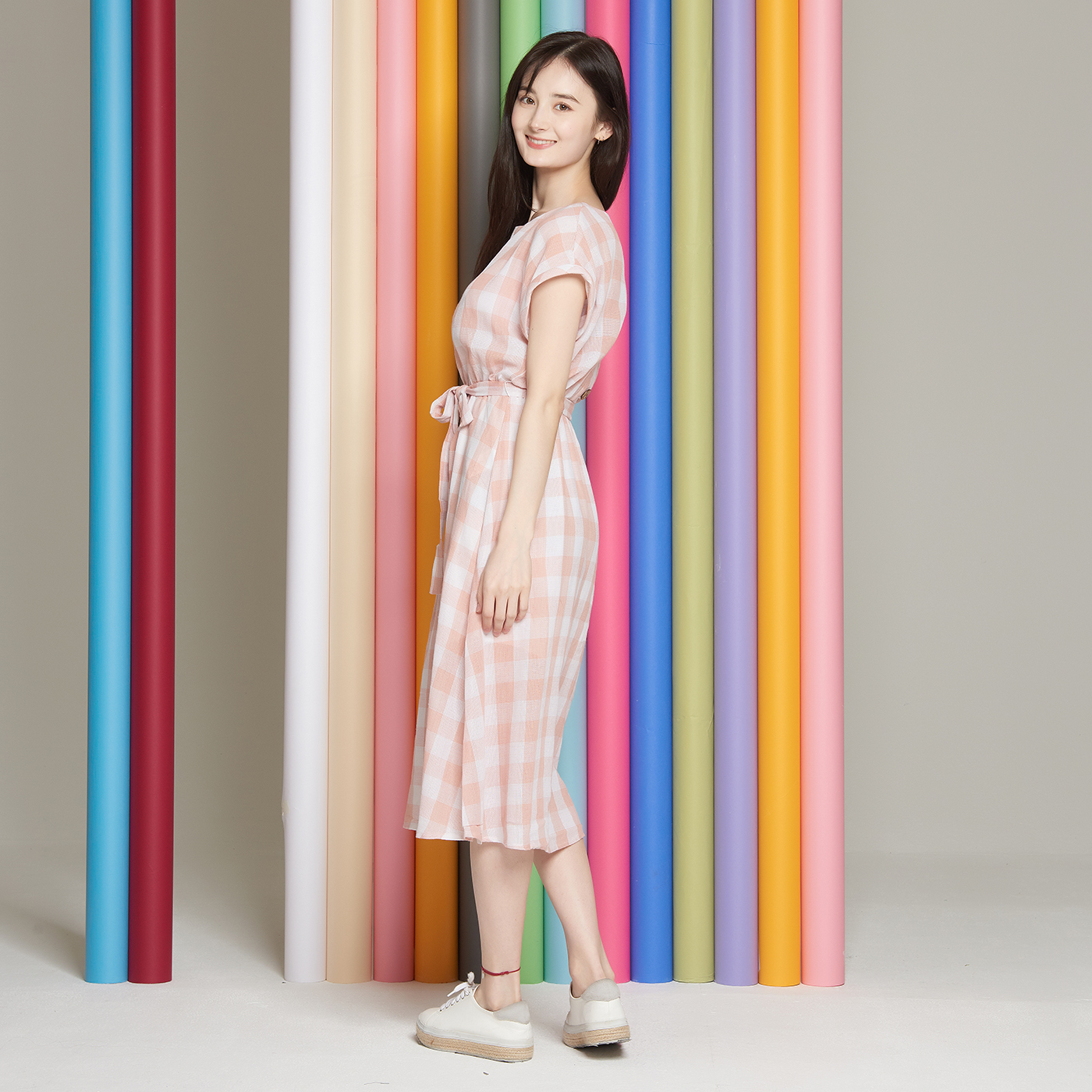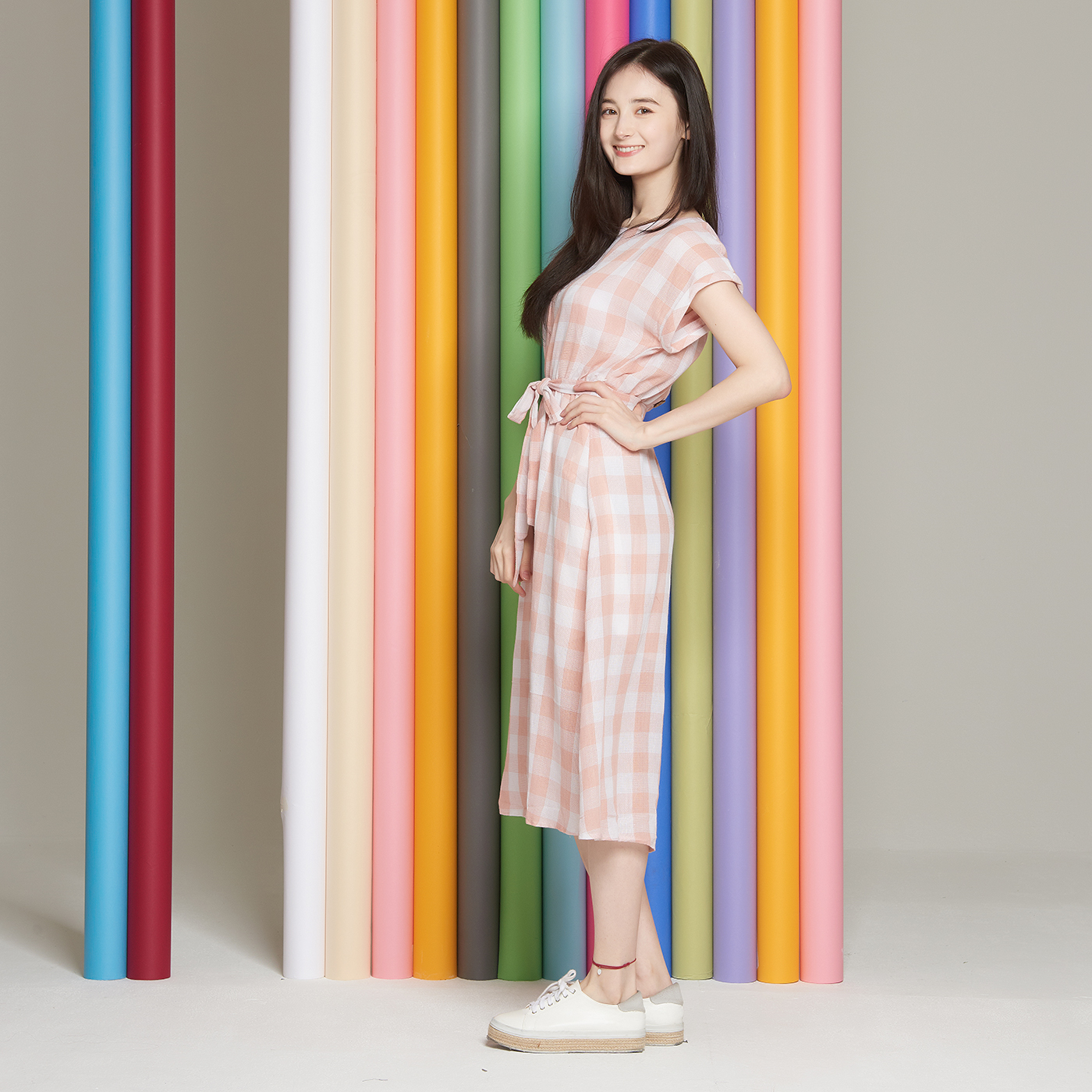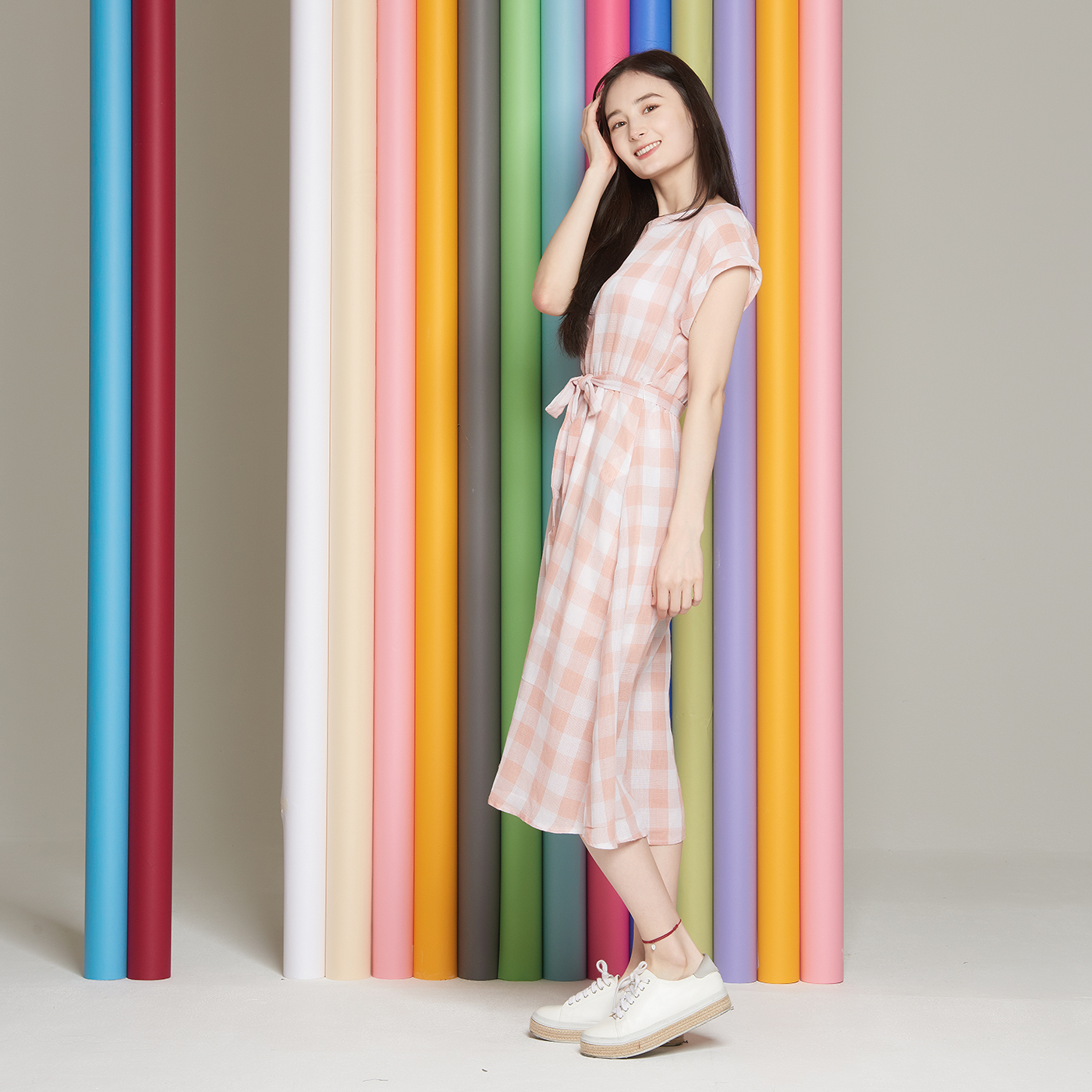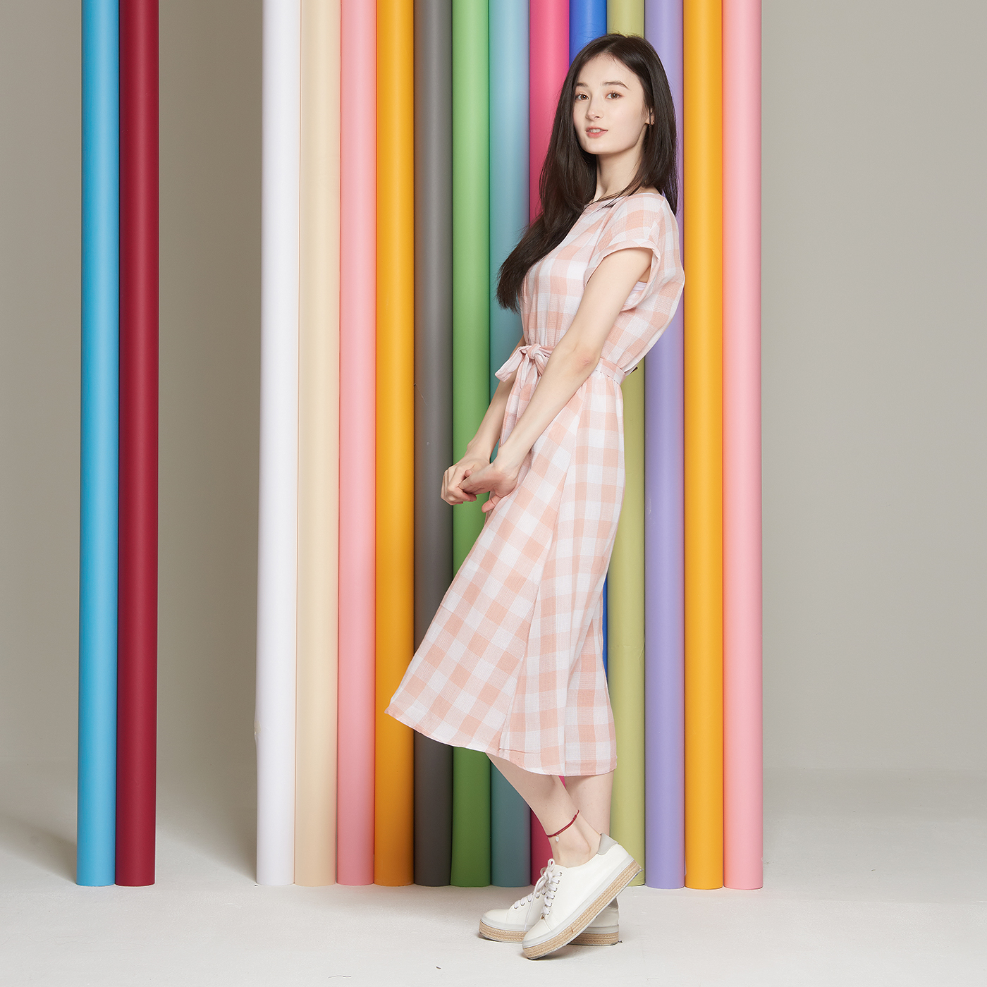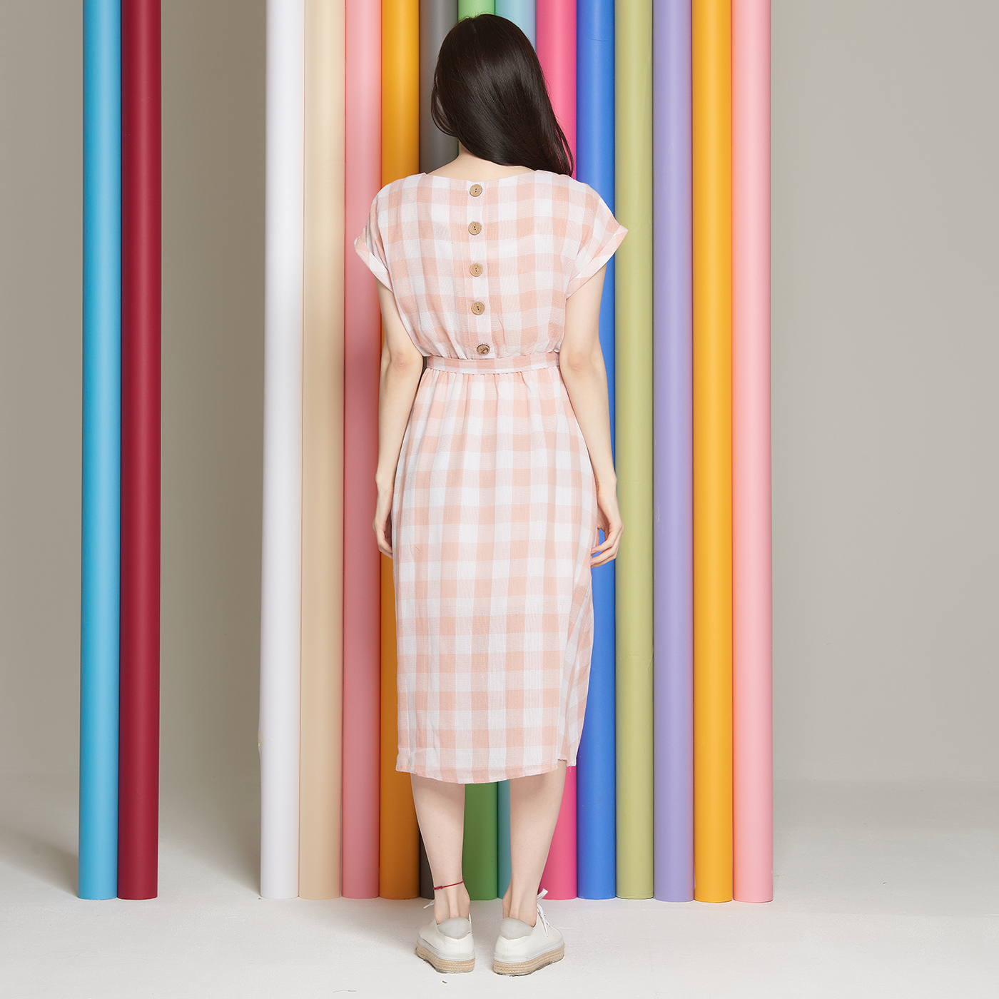 사랑스런 은은한 핑크 체크패턴의 원피스로 등라인의