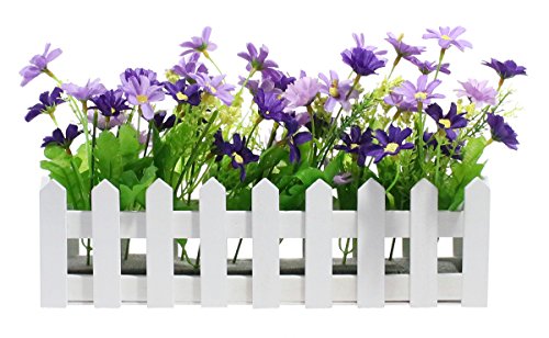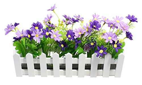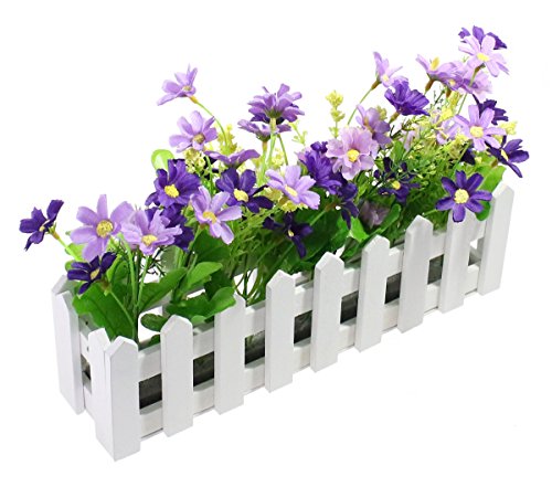 Decorative Wooden Picket Fence Window Box / Flower Box with Artificial Daisies - Purple & Violet, 11.7"x7.4"x2.92"