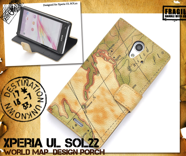 スタイリッシュな地図デザイン!Xperia UL SOL22用ワールドデザインケースポーチ