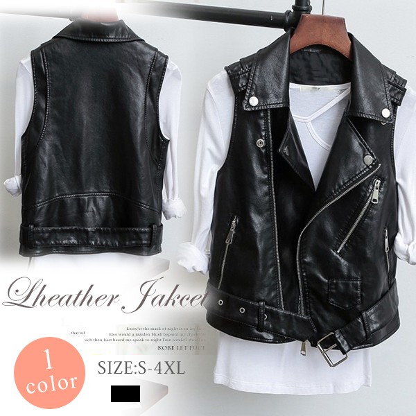 デイリーに活躍してくれそうなアイテム☆ライダースタイプの合皮ベスト!スリーブレスはハードになり過ぎないし重ね着コーデにぴったり?軽くてソフトなPUジャケットは着心地よし!本格的なレザーベストで着こなしにスパイスをプラスしてみて!(注意事項)※撮影時のライティング、ご覧になっているモニター?PC環境により実際の商品と色味が異なって見える場合がございます。※機械による生産過程におきまして、どうしても生地を織る際の糸の継ぎ目や多少のほつれ、または色ムラなどが生じている場合がございます。■状態:新品未使用■透け感:なし■素材:PU■カラー:ブラック■サイズ:S M L XL XXL XXXL XXXXLS 着丈47cm 肩幅38cm バスト84cm 参考体重40-47kgM 着丈48cm 肩幅39cm バスト88cm 参考体重47.5-52.5kgL 着丈49cm 肩幅40cm バスト92cm 参考体重52.5-59kgXL 着丈50cm 肩幅41cm バスト96cm 参考体重59-65kgXXL 着丈53cm 肩幅42cm バスト100cm 参考体重65-70kgXXXL 着丈55cm 肩幅43cm バスト104cm 参考体重70-75kgXXXXL 着丈57cm 肩幅44cm バスト108cm 参考体重75-82.5kg