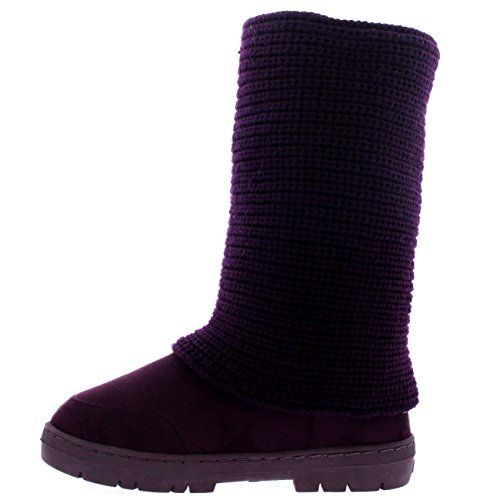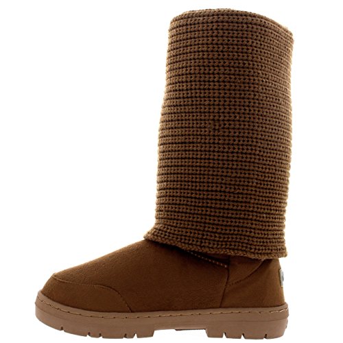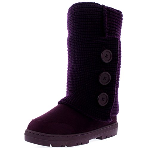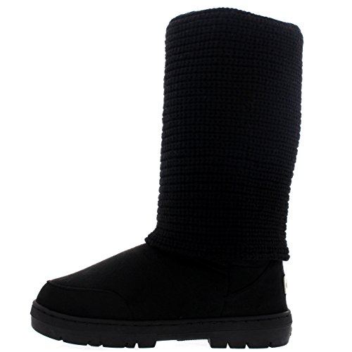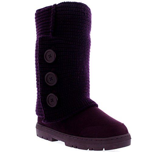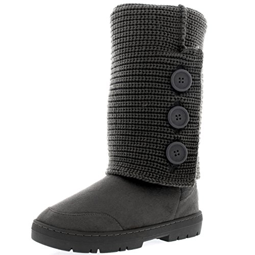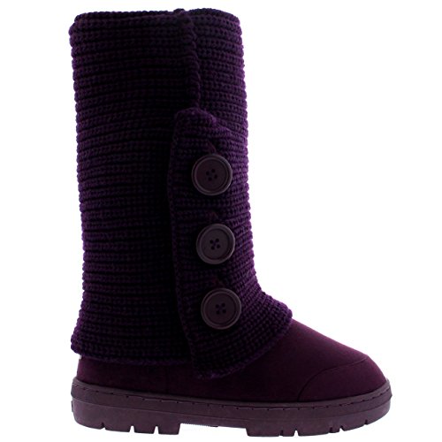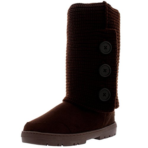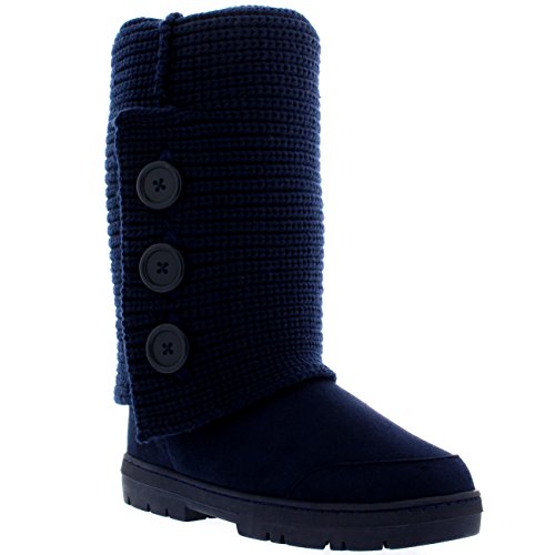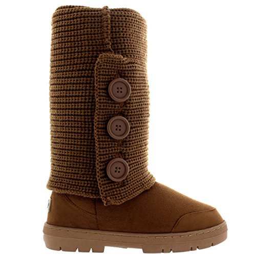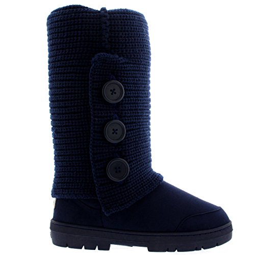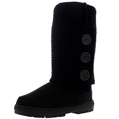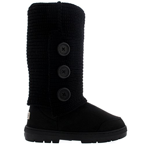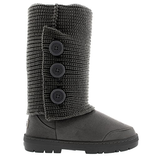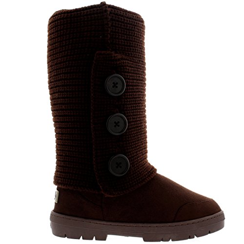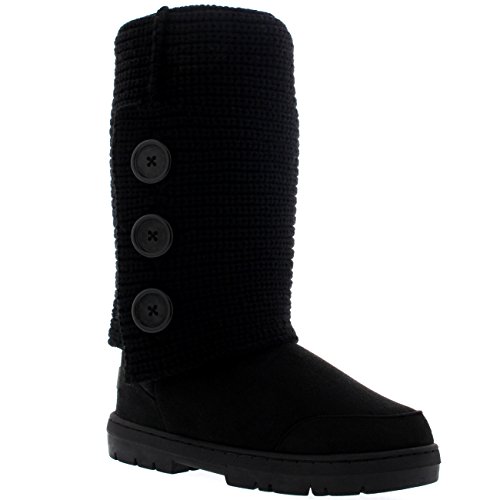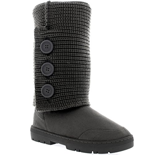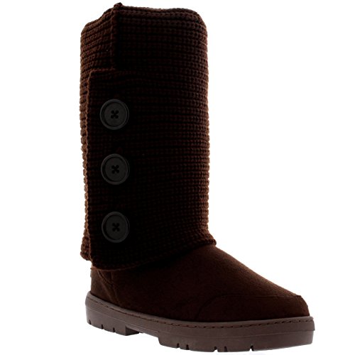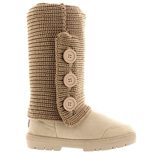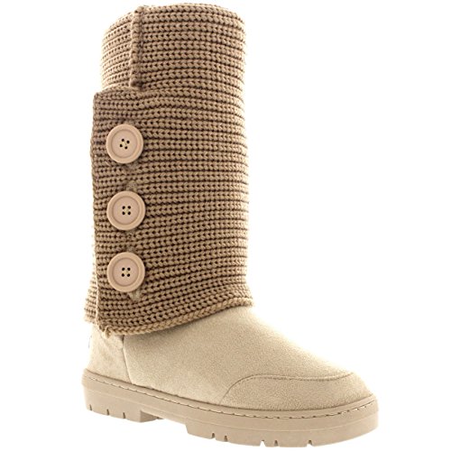 | Womens 3 Button Knitted Cardy Snow Fur Lined Rain Flat Winter Boots |