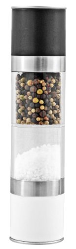 - With its attractive combination of stainless steel and black and white plastic, the cylindrical duo mill serves as a decorative design element