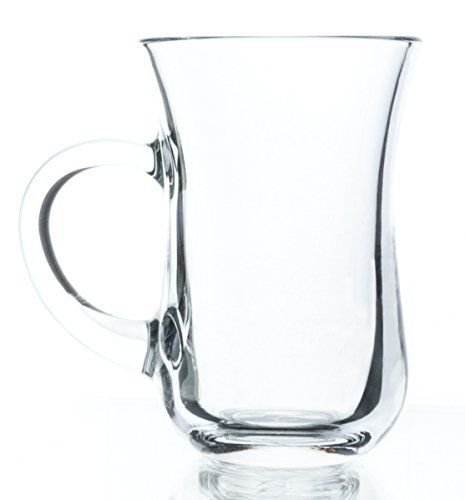 -. Brand : Marigold Houseware -. Color : Clear -. EAN : 0665166514725 -. Feature : Turkish hospitality is displayed with black chai tea served in a tulip shaped glasses / The transparency of a perfectly smooth glass makes it easy to see how strong or weak the tea is, while the narrow waist offers a visual guide for the right proportion of water / Handle allows the hot tea glass to be picked up safely / Capacity: 5 oz; Approximate dimensions: 2.5 (top)" x 4 H" -. Label : Marigold Houseware -. Manufacturer : Marigold Houseware -. ProductGroup : Kitchen -. ProductTypeName : KITCHEN -. Publisher : Marigold Houseware -. Studio : Marigold Houseware -. Title : Persian Tea Glasses with Handles, 5 oz Ounce - Set of 6 -. UPC : 665166514725