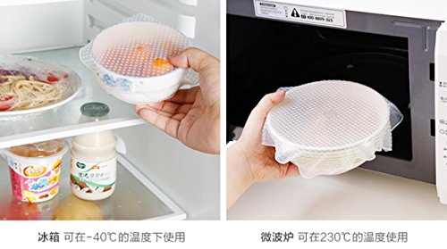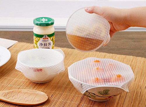 Magik Stretch Reusable Silicone Bowl Food Storage Wraps Cover Seal Fresh Lids (4 Pack, Transparent)