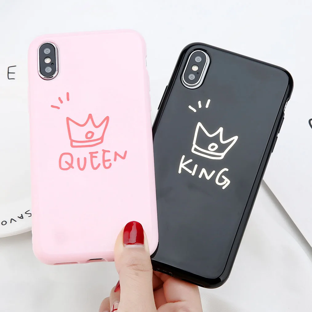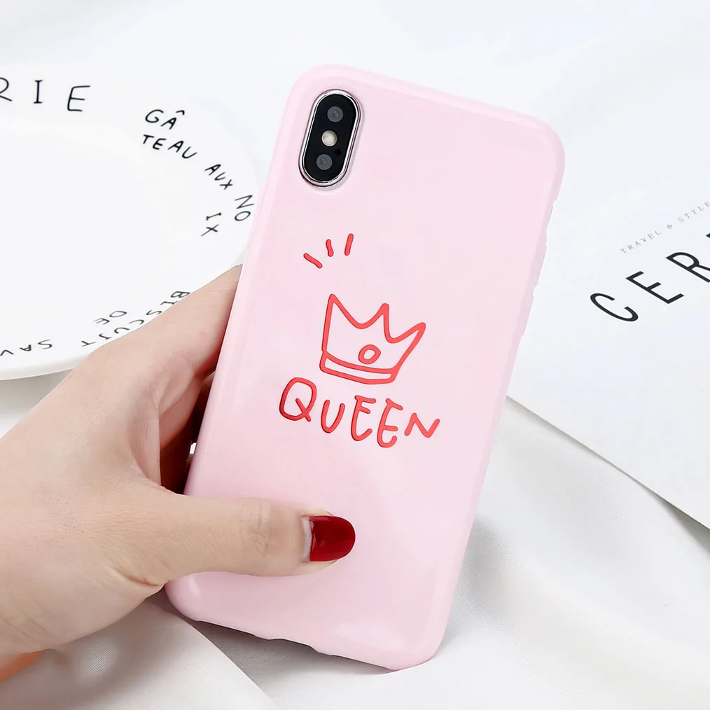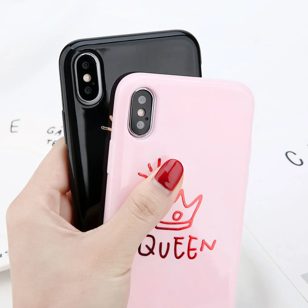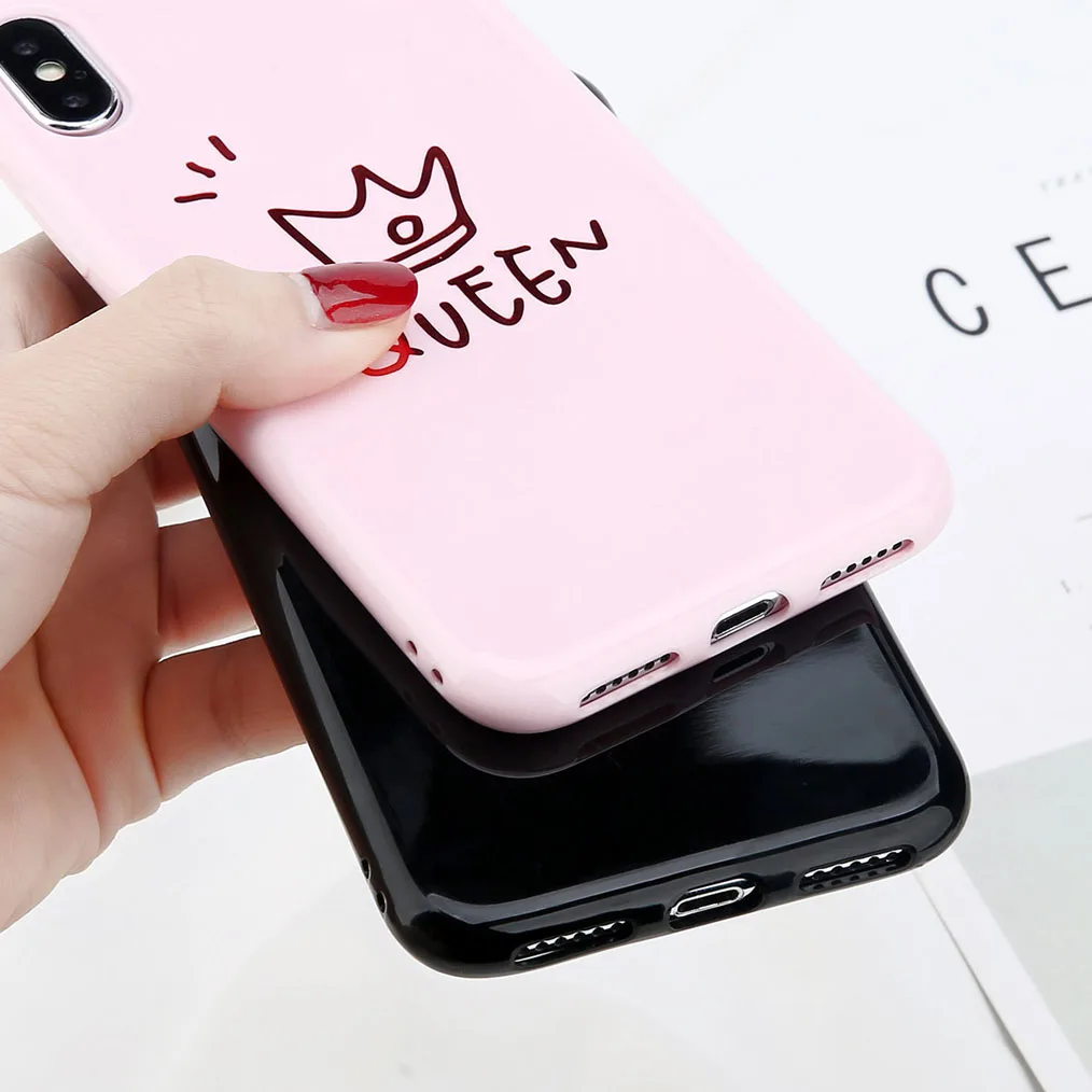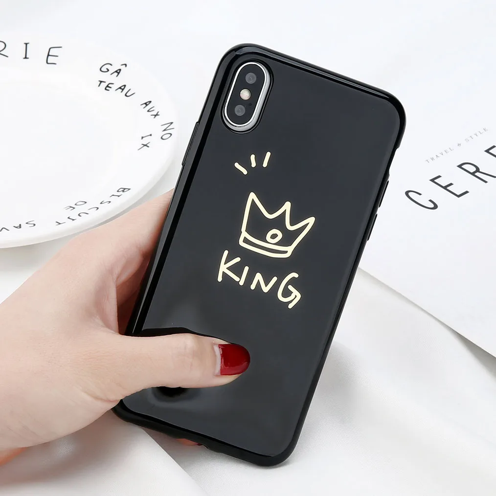 uslion光沢クラウン電話ケースiphone用6 6 sプラス手紙キング女王バックカバーソフトtpuケースiphone用× 8 7 6 sプラスcoque