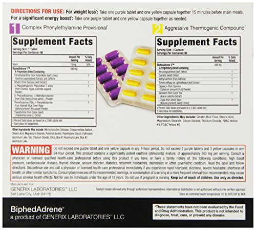 Recently, an entirely new crop of high-quality, super-powerful, and super-effective diet pills have been hitting store shelves. The current leader in this category is BiphedAdrene, developed and sold by a division of Generix Labs, LLC. BiphedAdrene is a two-part system comprising unique functional ingredients designed to offer powerful appetite control, mood elevation, and energy, combined with powerful thermogenic (fat burning) effects.*