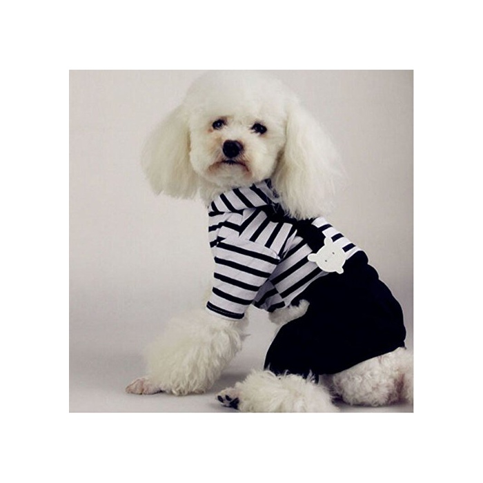 Mews House(뮤즈 하우스)애완동물복 코튼 보더 롬퍼스(rompers) 곰 뽀빠이 바지 후드 부착