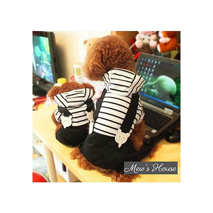 원본상품명:Mews House(ミュ?ズハウス)ペット服 コットン ボ?ダ? ロンパ?ス くまサロペット フ?ド付き