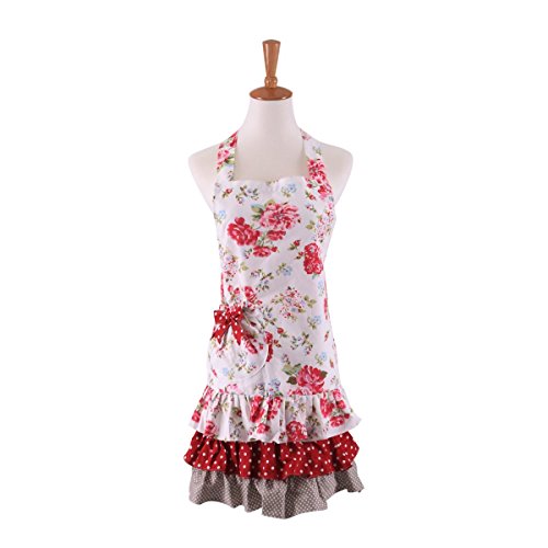 -. Title : ラブリークラシックスタイルピンクローズ花柄女性の料理ポケットとエプロンを焼く妻の女性のための素晴らしいギフト(アダルト女性のエプロン)