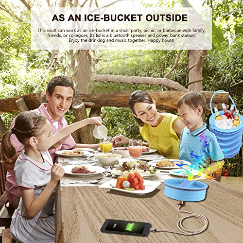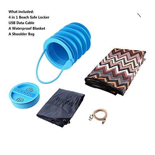 Hrome Beach Safe Locker 4-in-1 With Wireless Speaker, Beach Vault, Perfect ice bucket with Bluetooth Storage Vault, Power Bank+ FM Radio, A Waterproof Blanket & A Shoulder Bag Included