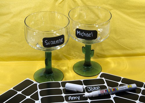- Feature : Set of 54 Rectangle Chalkboard Labels Perfect Fit for Glassware or Small Containers, 1 x 2 1/8 inch also great size for small Libbey Spice Jar, see our other Ziggyboard brand labels for larger sizes / Simple to use peel and stick Chalkboard surface works on any smooth surface including glass, wood, plastic or metal / Comes with FREE Fine Tip White Chalk Marker, Waterproof removes with Windex will not run, wine or drinks will not remove chalk marker / Chalkboard Label is Dishwasher Safe, stays on the glass or container, remove with hair dryer heat / Marker makes fine 1/32 inch line that looks like chalk, Semi-Permanent sticker not recommended on painted walls