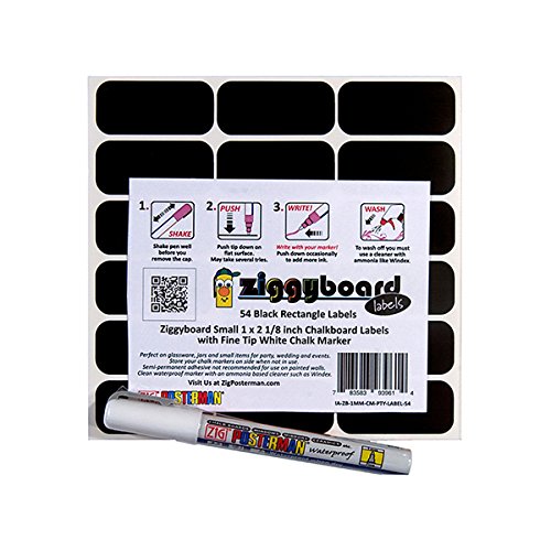 - Title : Ziggyboard Chalkboard Party Labels with Fine Tip White Chalk Marker 54 Small Rectangle Shape Stickers for Home, Kitchen, Wedding or Events