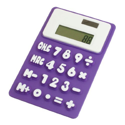 -. Feature : Silicone Magnetic Fridge Sticker 8 Digits Calculator, Purple/White / 8 Digits Refrigerator Magnetic Silicone Foldable Calculator / Silicone foldable keyboard, magnetic sticker on the back. / The calculator displays 8 Digits, easy to read screen display and numbers. / Can be install on the fridge surface or other metal mateiral flat place.