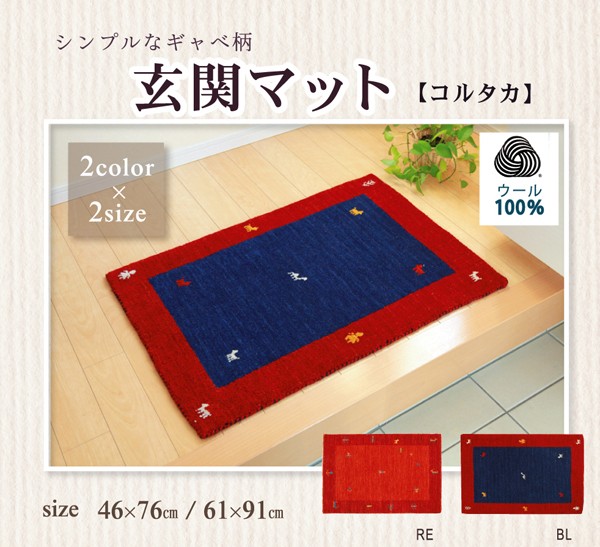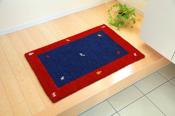【商品名】玄関マット 室内/屋内用 ギャベ柄 ウール100% インド製 『コルタカ』 ブルー 約61×91cm