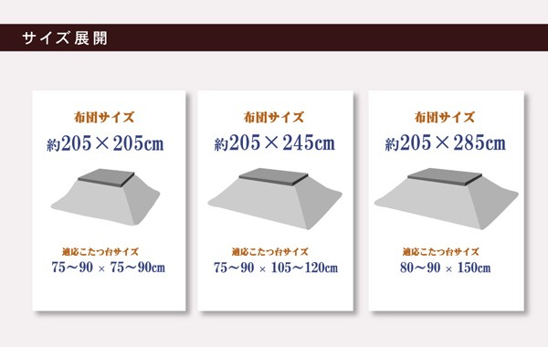 75~90×105~120cm幅のこたつ台に適応
