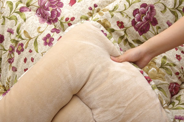 エレガンス調の花柄をあしらった綿素材のこたつ布団です。デザインは国内でプリント工程を行う事で、より繊細・鮮明な柄を出す事が出来ました。日本製のプリントらしい、上質な質感と文様をお楽しみ下さい。肌に触れる裏地にはフランネルと呼ばれる、しっとり柔らかな生地を使用しています。また、布団が体にフィットする様にキルティングをしており(フィットキルト加工)、熱が逃げにくい形に仕上げました。部分暖房のコタツは電気代もおトクです。