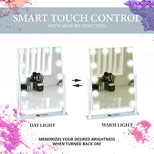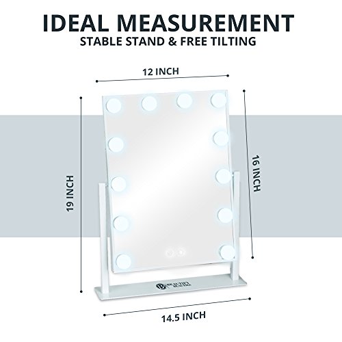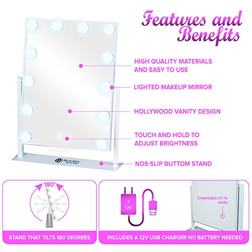 Beautify Beauties Lighted Makeup Mirror / Vanity Mirror, Hollywood Style Cosmetic Mirror with LED Dimmer Bulb Lights (White)
