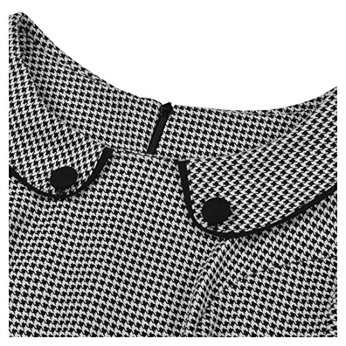Retro Neck Houndstooth-Print Peplum 1/2 Sleeve Formal Pencil Dress