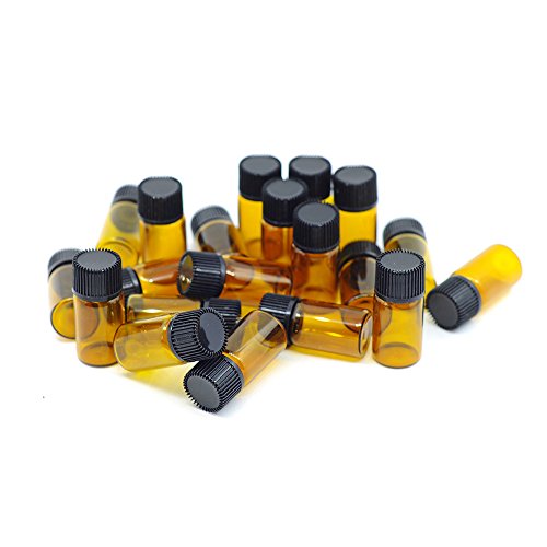 Coolrunner 1 ml (1/4 dram) Amber Glass Vial Essential Oil Bottle with Orifice Reducer and cap - 10 PCS