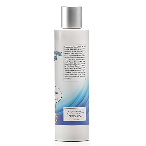 Calms unbalanced skin and restores your natural pH levels. Control and remove excess oils, unblocks stubborn pores & minimizes pore size. Reduces blackheads and breakouts. Calms irritation, redness, and inflammation. Cleans and prepares the skin leaving it feeling fresh and hydrated while removing residue left over from make-up, make-up removers and facial cleansers. Nourishes and moisturizes utilizing essential anti-aging nutrients for a healthy and youthful looking complexion. Safe & effective for all skin types, women, men and teens. Perfect for those with sensitive skin. Contains no alcohol, no parabens, no sulfates, and no artificial colors or scents. This product not tested on animals. Beauty Facial Extreme's products work, and they work extremely well. We stand behind our products 100%, with a guarantee of significantly transforming your skin to achieve healthy and more vibrant skin. Order Now, 30 Day Money Back Guarantee.Feature
