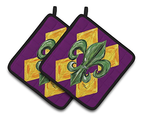 Caroline's Treasures Mardi Gras Fleur De Lis Purple green & Gold Pair of Pot Holders 8133PTHD, 7.5HX7.5W, Multicolor