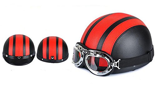 (OSdream)/Cycling Wheel Sports/BMX/DIRECT FROM USA/OSdream Motorcycle Motorbike Scooter Open Face Half Leather Helmet with Visor UV Goggles Retro ...