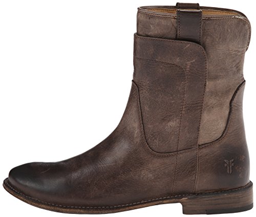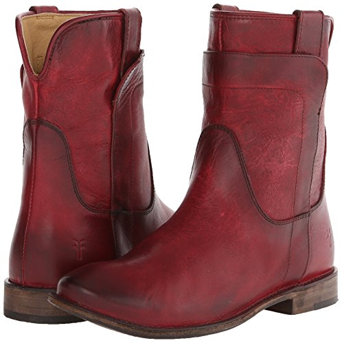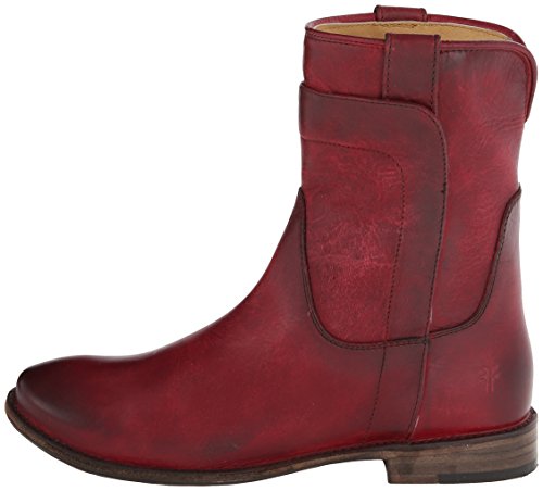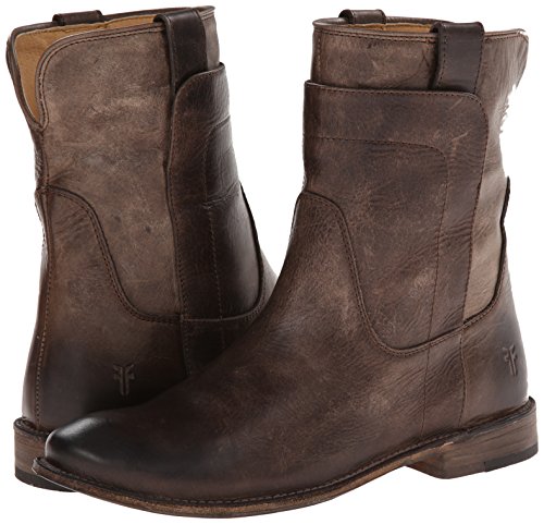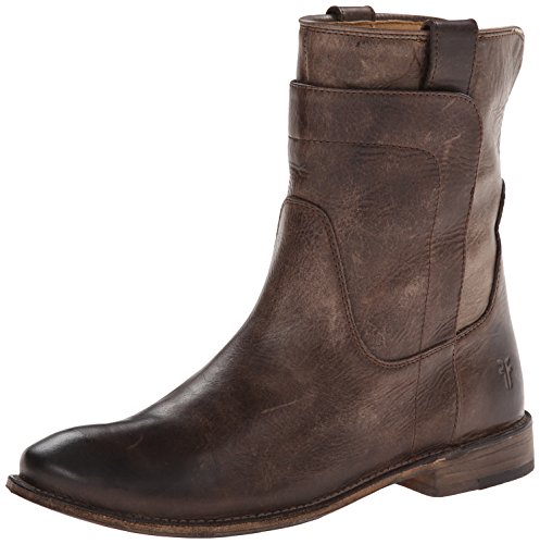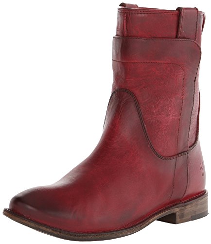 Studio : Frye Publisher : Frye Binding : Apparel Product Description Smooth leather upper with overlapping leather detail. Pull tabs for easy on and off. Round toe style ankle boot. Leather lined for all day comfort. Stacked leather heel with rubber tap. Leather sole. Measurements: Heel Height: 1", Circumference: 13", Shaft: 8" 0