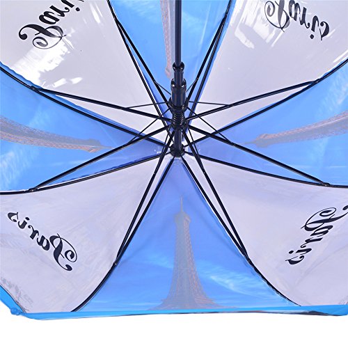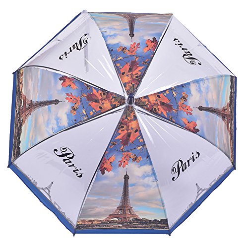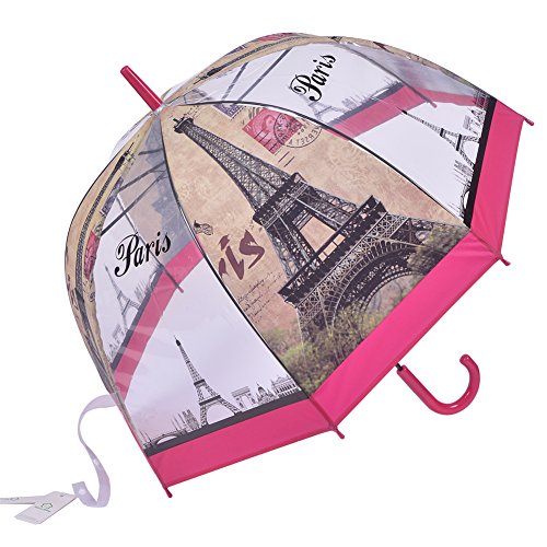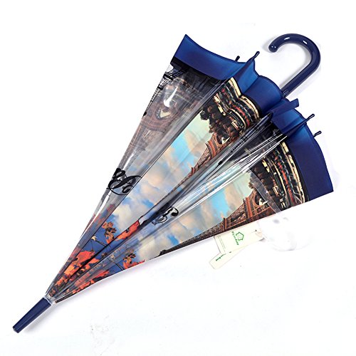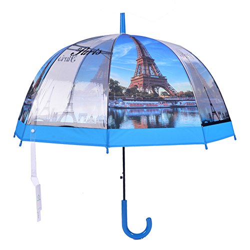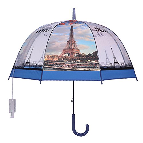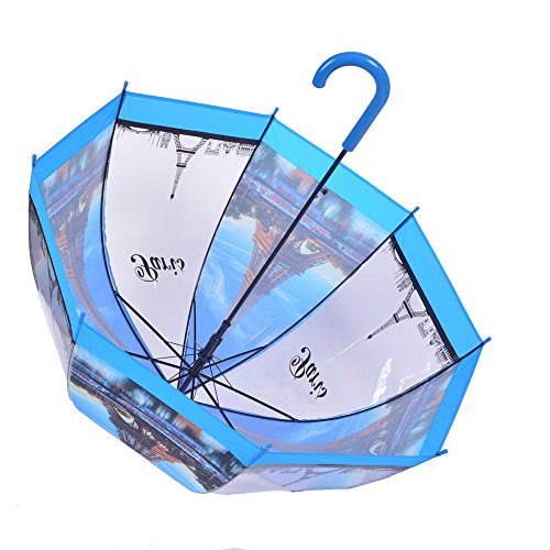 -. Feature : BUBBLE DOME SHAPE: Unique bubble dome clear umbrella canopy covers your head and shoulders. You can feel the rain drops closer when it is pouring. Keeps you drier from rain and wind than traditional umbrellas. / AUTO OPEN, LIGHTWEIGHT AND PORTABLE: Automatic Open functionality ensures that there will be no delay to your comfort. Fast and reliable automatic opening function. Simply press the button on the shaft to open. / CUTE DESIGNS: transparent umbrella canopy with prints, matching color umbrella end, portable hook handle, and its simple designs makes this clear umbrella a ideal gift for kids boys girls and women. / LIFETIME GUARANTEE - We cannot fight the acts of God, rain included, but we do our best to save our customers from wasted time, hassle or stress! That's why we offer a LIFETIME GUARANTEE. For the first 90 days we offer a full refund if it doesn't meet your expectations, and a replacement warranty for the lifetime of your purchase! NO RETURN NEEDED.