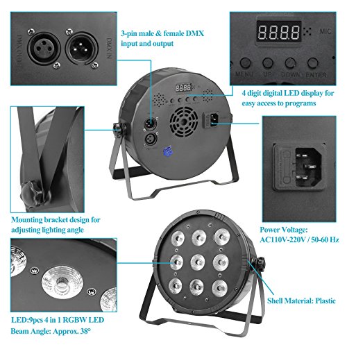 GBGS Par Can Light 9 RGBW LED 8CH DMX512 DJ Stage Lighting for Wedding Event Festival Celebration KTV Party Show