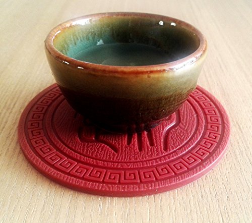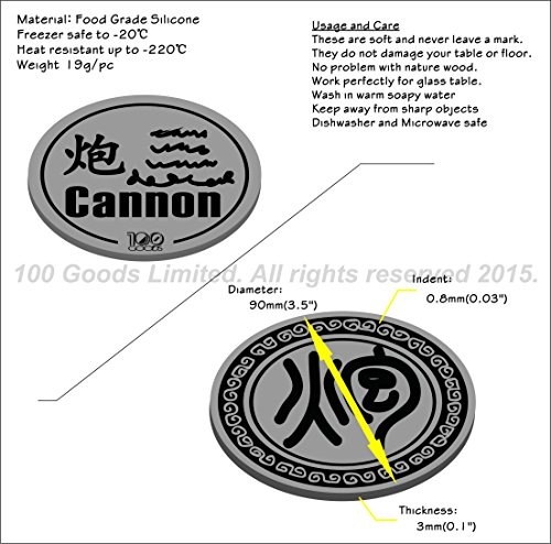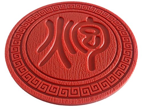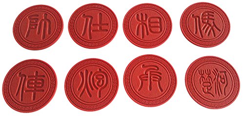 Set of 8 Silicone Drink Coasters, in the shape of tradition (Red side) Chinese Chess Xiangqi in ancient Qin Script. Translation to English, German, French, Spanish, and Italian is provided at the back.