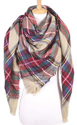 Feature : GREAT LOOK: This awesomely transitional winter scarf will accentuate your look no matter the outfit. With frayed edges, layer this scarf with your favorite shirt and winter vest, or throw it on with a stylish leather jacket. Perfect with your dressiest cashmere and wool sweaters, as well as your everyday yoga pants, messy bun and sunglasses! / GREAT FIT: One size fits most. This checkered women's blanket scarf is square shaped and measures 58" by 58" laid out flat. Fold it diagonally and wrap it around your neck, have it low on your shoulders like a shawl or stole, or wrap it any way you want! / WHEN TO WEAR: This plaid ladies scarf is perfect to keep you warm in freezing winter weather, but wear it as a great fashion accessory in the fall and autumn too! Let it keep you warm and trendy as you shop, go to concerts, go out with friends, go on date nights, take a stroll around your city, walk your dog, play Pokémon GO and so much more! / GREAT QUALITY: This trendy womens blanket scarf is 100% acrylic. Wash in a cold, gentle cycle, and hang to dry.