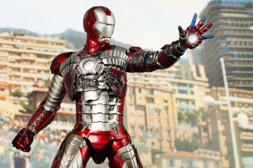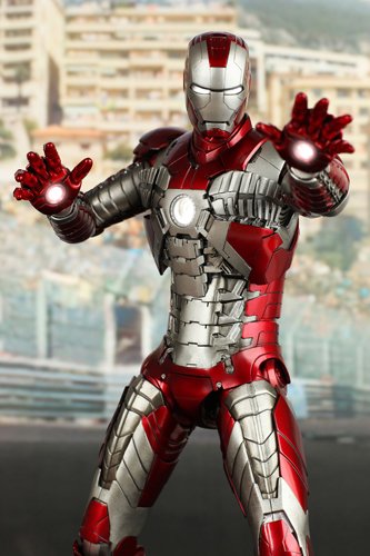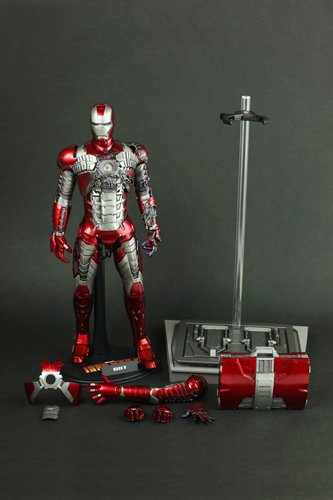 ホットトイズの「ムービー・マスターピース」シリーズに映画『アイアンマン2』からファン待望のアイアンマン・マーク5が遂にラインナップ!アイアンマンであるトニー・スタークが持ち運びの利便性を追求し、必要最低限の能力だけを搭載したパワードスーツ、マーク5。ノーマル版だけでなくバトルダメージ版までも再現できる贅沢仕様で、スーツケース型のパワ―ドスーツが登場だ!全高約30センチで、36箇所以上が可動するフィギュアは、マーク5が搭載しているギミックやディテールを精巧に再現している。目や胸部のアーク・リアクター、両手のリパルサー光線発射部は、LEDライトアップ機能を搭載し白く発光する。ライトアップ機能に対応したハンドパーツはもちろん、指先が可動するハンドパーツも付属。バトルダメージ版差し替え用パーツは、スタークのブルーのレーシングスーツが一部露わになった腕や胸部アーマーなどが付属。激しい戦闘によって装甲が破壊された劇中シーンを臨場感たっぷりに再現して楽しむことができる。変形する前のスーツケースや、スタークのパワードスーツ格納庫を模したLEDライトアップ機能搭載のフィギュアスタンドが、通常のスタンドとは別に付いているのも嬉しいところだ。装着シーンのカッコ良さが印象的なアイアンマン・マーク5の魅力を余すことなく再現したホットトイズ。「ムービー・マスターピース」シリーズの『アイアンマン』フィギュアをコレクションするならば、絶対に外すことができないマストアイテムだ。Feature