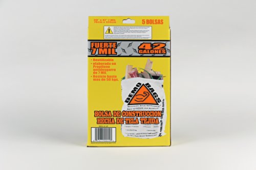 DemoBags Reusable 7 MIL 42-gallon Contractor Trash Bags, 5-count box