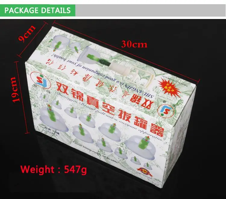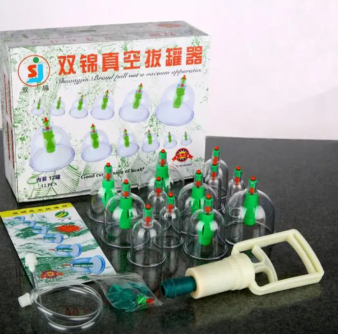 New Chinese Medical 12 cups Vacuum Body Cupping Set Portable Massage Therapy Kit Free Shipping Shuangjin Cupping Hijama kit cuppcakPACKAGE:12 Cups,small ABS suction pump, connecting pipe,color box ,ENGLISH manual