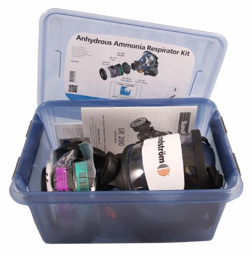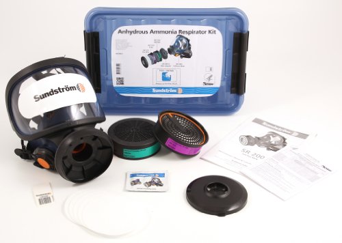 Sundstrom H05-8621 Anhydrous Ammonia Respirator Kit with SR 100 M/L Silicone Full Face Mask, P100/HE Particulate Filter, AM/MA Chemical Cartridge, Prefilters