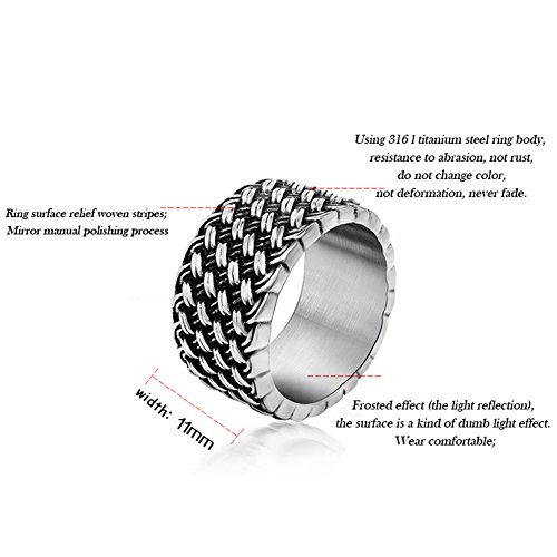 -. Title : Chryssa Youree Men's Retro Design Jewelry Wedding Band Woven Titanium Steel Silver Rings 7 to 12(DJZ-1)