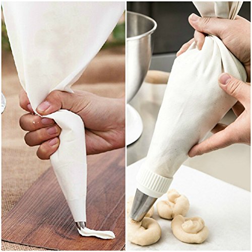 LARGE PASTRY BAG FOR BEAUTIFUL CAKE/CUPCAKE DECORATIONS. 18-inch white cotton piping bags feel nice to hold and pipe frosting smoothly. Tip not included.