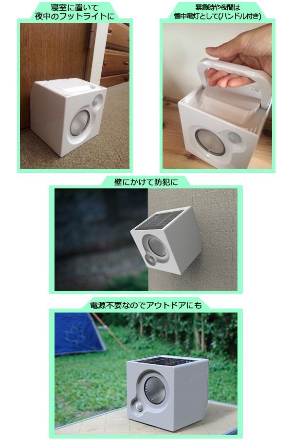 太陽の光「ソーラー」と「手巻き充電機能」がついているので、「電源がない!」「乾電池が切れた!」などの心配がありません。置く・持つ・取り付け、3通りの使用ができるので様々な場所で大活躍してくれます。機能性とインテリア&デザイン性を重視した高級感ある新しいセンサーライトです。 |