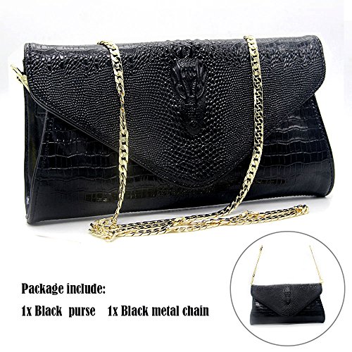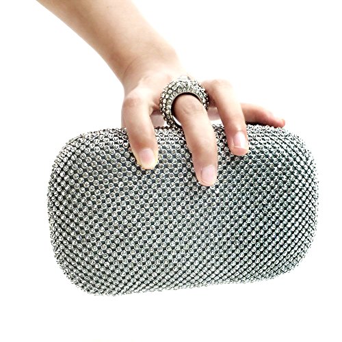-. Brand : Bidear -. Department : womens -. Feature : Sparkling clear crystals and silver frame evening clutch / Crystals studded clasp closure for easy access / Hard case with color matching satin lining / Two detachable chains (6" and 21") converts from handbag to crossbody / Material: Polyester and alloy;Size: 17*5*11CM(L*D*H) -. Model : Wbag63 -. ProductGroup : Shoes -. ProductTypeName : HANDBAG -. Title : Bidear (TM) Women Sparkling Metal Lock Clutch Rhinestone Frosted Evening Party Clutches