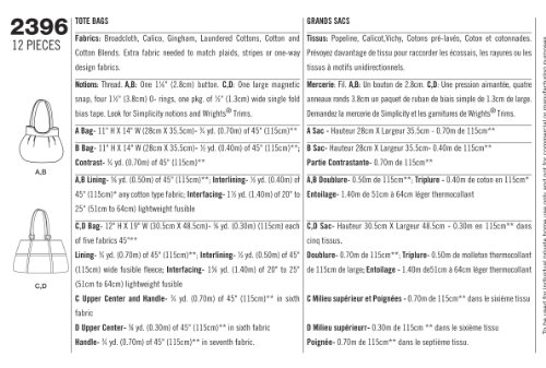 -. Title : Simplicity Pattern 2396 Tote Bags 4 Styles Designed by Sweet Pea Totes
