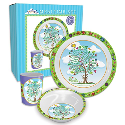 Enesco 4055473 Sonlight From Gregg Gift Jesus Tree Dinner Set, Blue