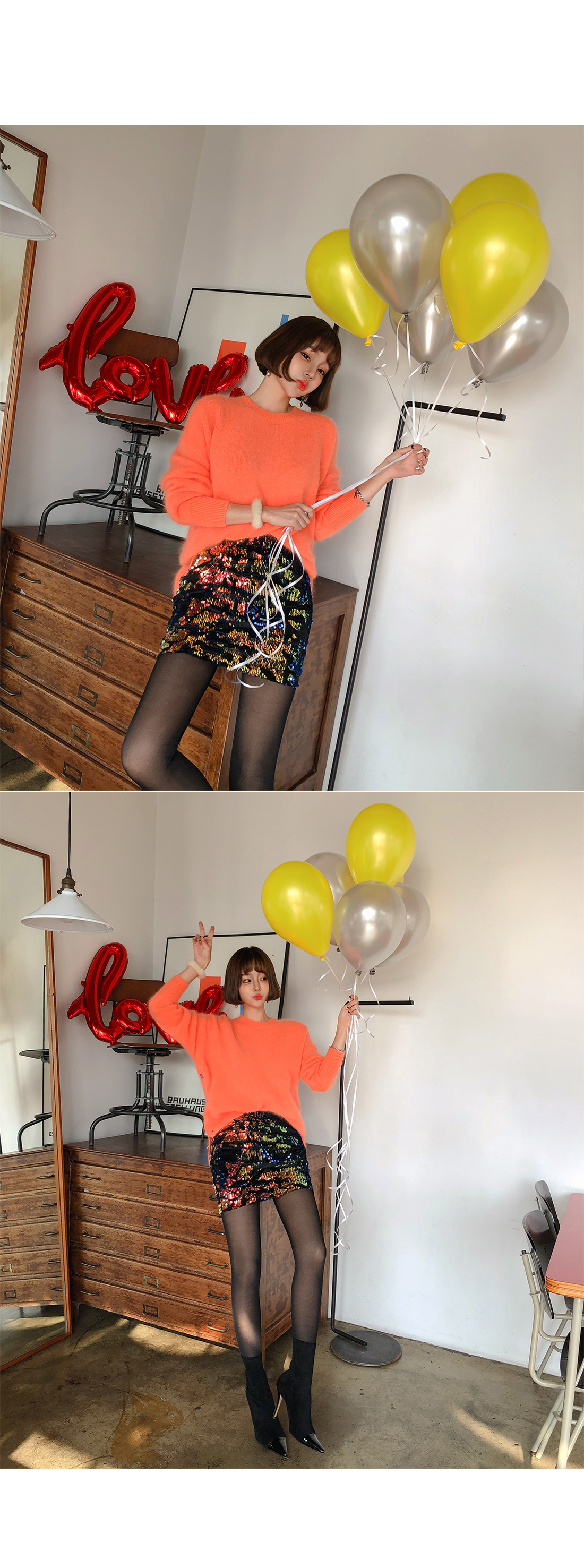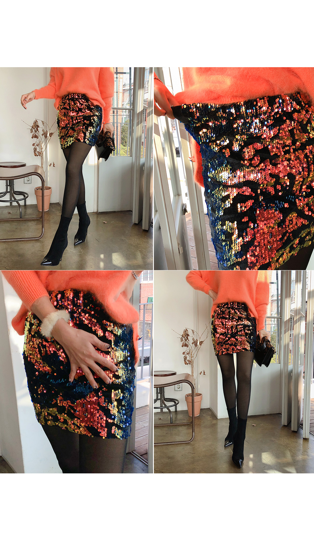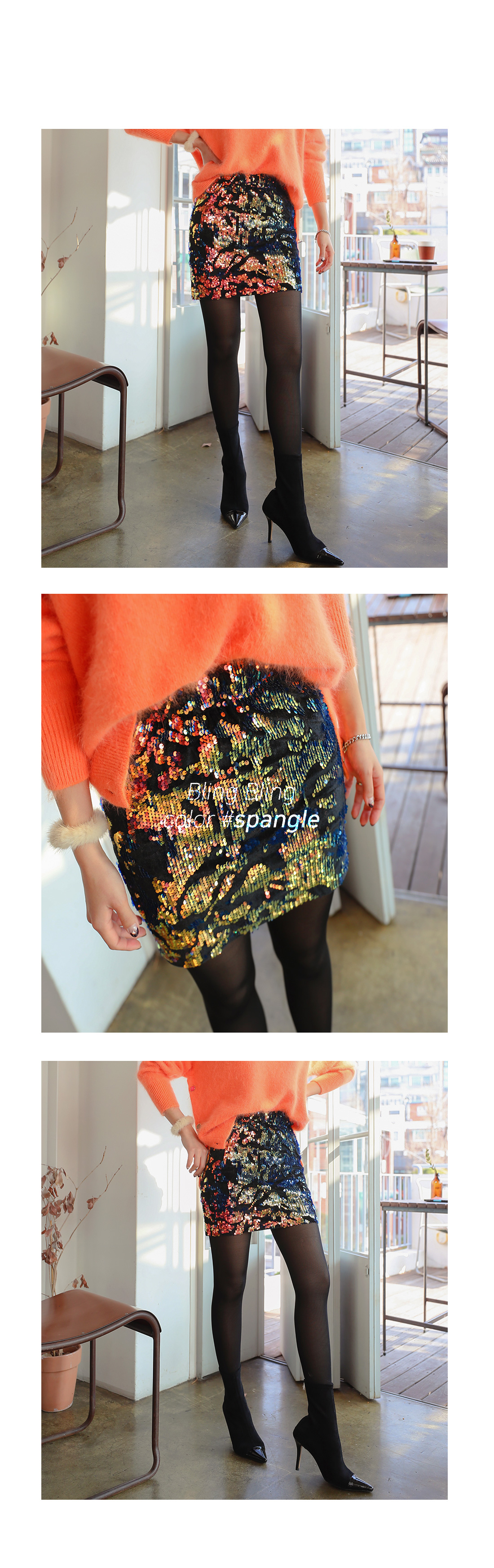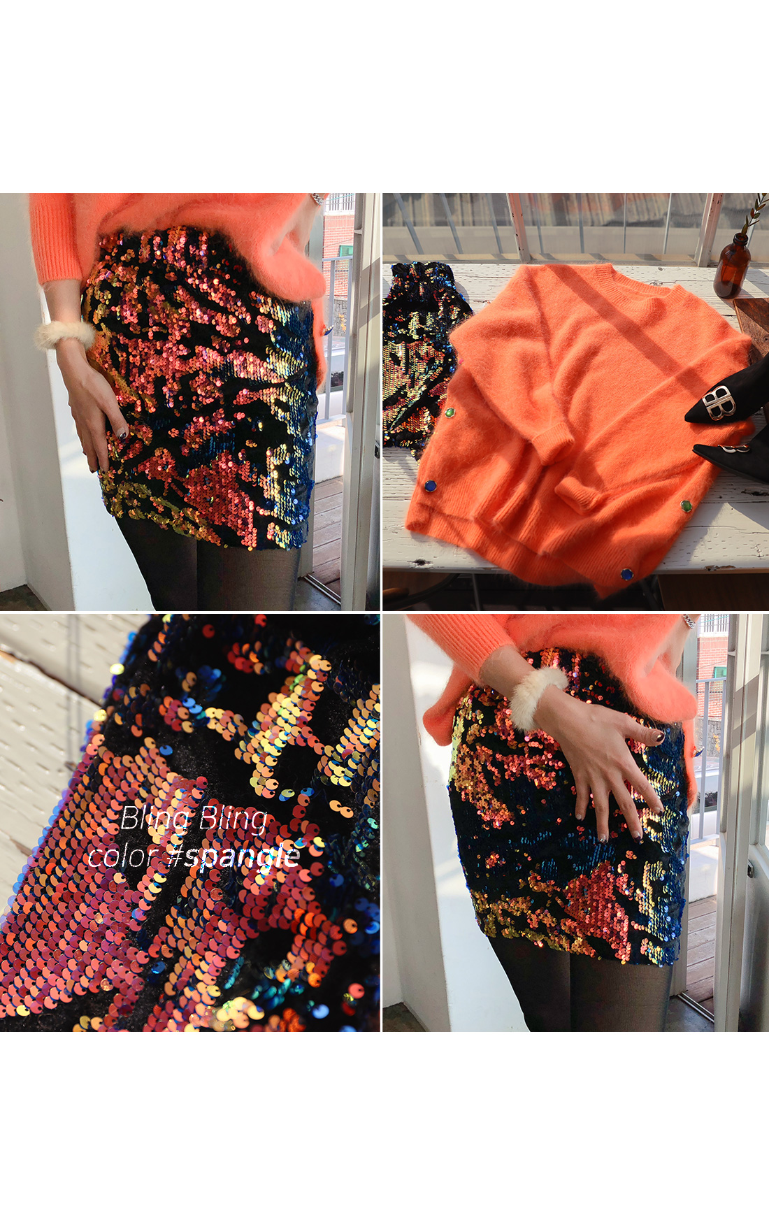 MD COMMENT 다양한 컬러감이 매력적인 '비즈미니스커트' 를 소개할게요.조명과 각도에 따라 컬러가 다르게 연출되어더욱 매력적인 아이템인데요.바디에 슬림하게 핏되어 섹시하면서도 세련된 라인을 연출해주며허벅지 중간까지 오는 미니멀한 기장감으로레그 라인이 길어보이는 효과를 가져다줘요.톡톡 튀는 포인트 아이템으로 베이직한 아이템과 매치해줘도센스있는 스타일링이 완성되요!실키한 안감이 구성되어 있어 안정감있는 착용감을 느낄 수 있구요.허리 라인에 쫀쫀한 밴딩으로 편하게 착용할 수 있어요.하나쯤 소장하시면 두고두고 활용하기 좋은소장가치 높은 아이템이예요.파티룩, 연말룩으로 강력 추천해요^^COLOR/SIZE 옐로우FREEMODEL FITTING 옐로우/FREE