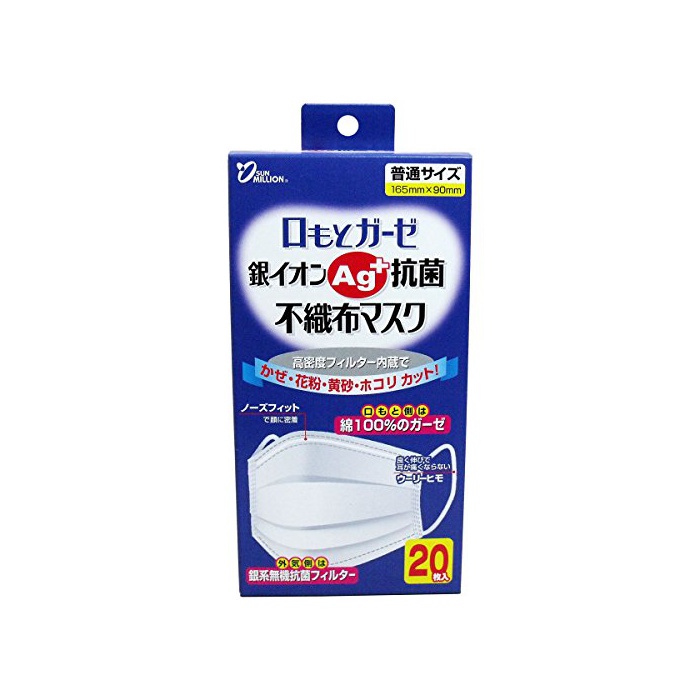 원본상품명: サンミリオン 口もとガ?ゼ 銀イオン抗菌不織布マスク 普通サイズ 20枚入