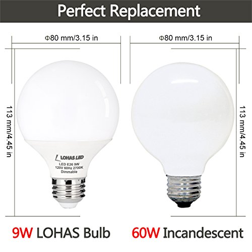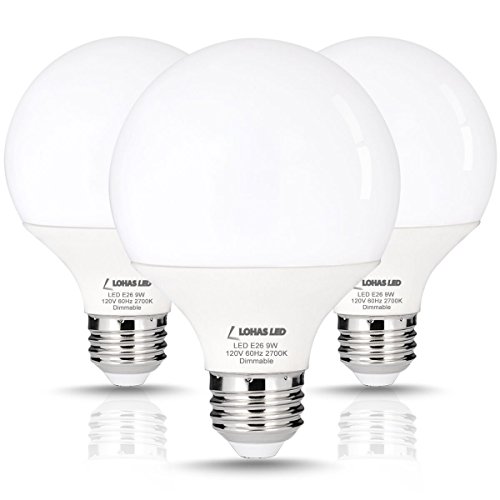 LOHAS Dimmable G25 LED Globe Light Bulbs, 60 Watt Equivalent(9W) LED Bulb, 2700K Vanity Bedroom Mirror Lights Warm White Lighting, E26 Medium Base 120V, 810 Lumens(3Pack)