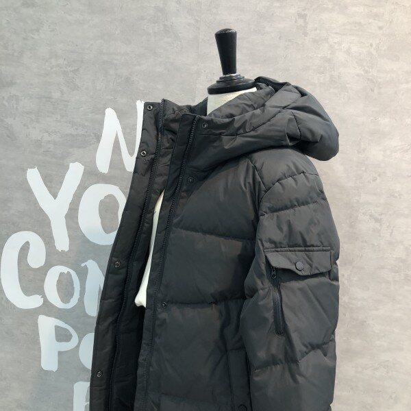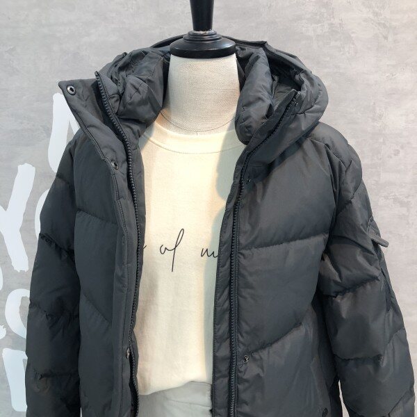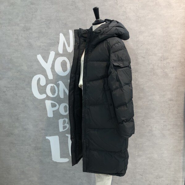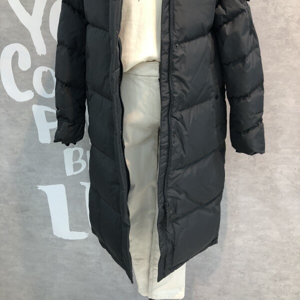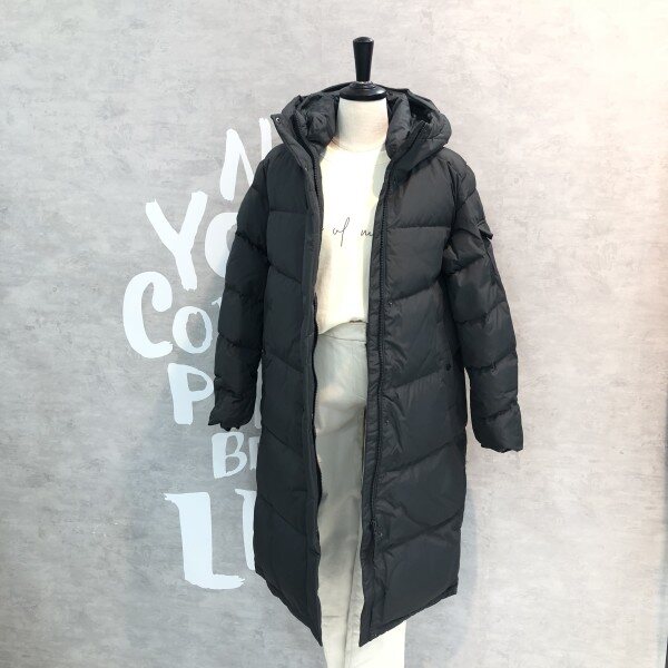 퀼팅 디자인에 오리털충전재로 보온성이 우수한 심플한디자인의 롱패딩 점퍼입니다