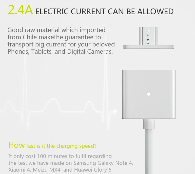 Function:Magnetic adsorption connection,data transmission,car magnet charging