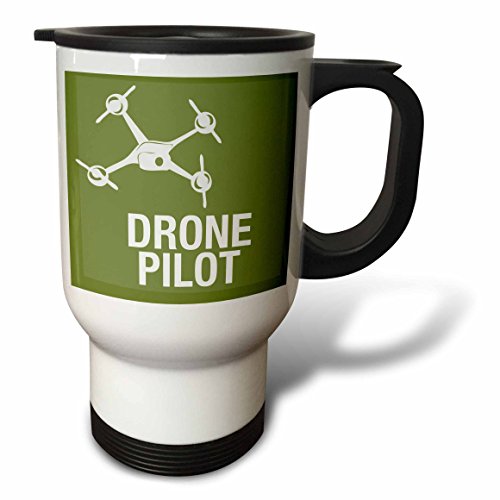 Big Green Drone with UAV Pilot Travel Mug is a great way to take your favorite hot or cold drink along. With a tapered bottom this stylish 14oz mug fits in a standard cup holder and features an easy-grip handle with thumb rest, slide opening lid and slanted drinking surface. This travel mug is made of stainless steel. Not microwave safe, hand washing is recommended.Feature